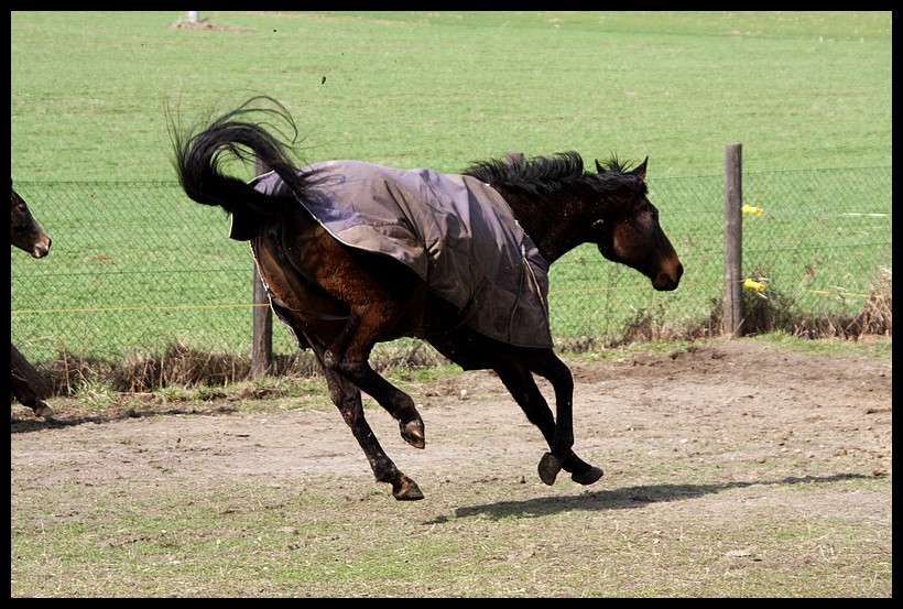 ( Ještě stále pohublá ale už konečně se pohybující jinak, než sunutím vpřed. Váhu korigujeme velmi opatrně, i přesto, že kopyta už se zdají v pořádku. )